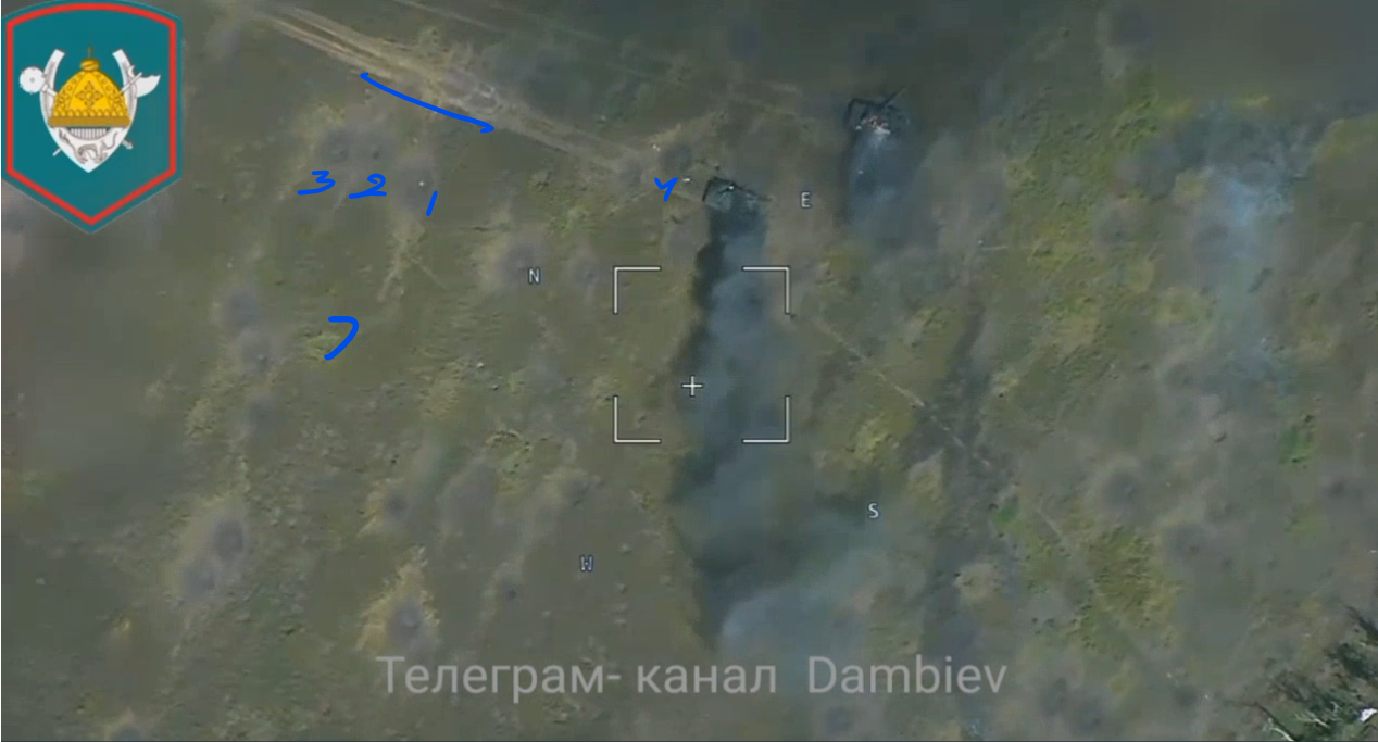 Источник: https://t.me/ChDambiev/25360 "Ещё кадры отражения сегодняшней атаки ВСУ на Новодонецкое.Танк ВСУ едет на огневую к западу от населённого пункта через поле и артиллерийский обстрел, в итоге подрывается на мине рядом со своим таким же неудачливым побратимом. Артиллерия 36 армии добавляет по танку бодрящим чугунием. Экипаж не покинул машину." _________________________ Stv13 В результате ночного спора, разбор видео атаки под Новодонецким, может кому будут интересны детали. Танки на видео буду нумеровать так: танк 1 – стоит в поле на момент приезда второго танка, танк 2 – приехавший. Первое видео https://t.me/voin_dv/4767 и второе https://t.me/ChDambiev/25360 Для тех кто не хочет картинки, хронология просмотра видео 2 такая, промежутки могут быть чуть с погрешностью +-пара секунд: [1:57-2:34, 0:00-1:03, 1:40-1:57, 1:03-1:40]. 1. На первом видео, танк 2, приезжает к уже стоящему танку 1 и подрывается на мине, по танку 2 добавляют артой, после чего он загорается, первое видео заканчивается. Танк 1 был с минным тралом, это можно заметить на нескольких кадрах второго видео 2. Хронология второго видео сильно перепутана, но не так, как предполагал magnetro1, буду писать таймкоды в хронологическом порядке, готовьтесь считать воронки. Нужная нам склейка на 1:57 и до конца видео, кадр с 2:08 когда камера наехала поближе, десант еще не приехал, танк 2 детонирует в первый раз 3. Переключаемся на фрагмент 0:00 – 1:03, приехал десант 4. По десанту был близкий прилет. БМП уехала, виден след разворота 5. На 1:03 склейка, мы переключаемся на фрагмент 1:40 – 1:57. По танку 2 снова добавили, либо он опять детонирует. Десант уже куда-то пропал 6. Возвращаемся на фрагмент 1:03 – 1:40. Наш танк? Стреляет по танку 1. На перекрестке присутствие наших войск, танк или птур, не разглядел 7. Камера приближается и мы понимаем, что это были последние кадры боя попавшего на видео 8. Особый привет Пану Жбану, который по этому видео сделал вывод, что посадка была атакована 2 танками и 2-5 бмп, которые не попали на видео, а так же провели успешную высадку. Тем самым подтолкнул на разбор :) По технике 2 танка точно в минус. Не утверждаю, что это была единственная вчерашняя атака, а так же не берусь судить за результат, но конкретно на видео попало это и то, что атака была успешной, под большим вопросом.