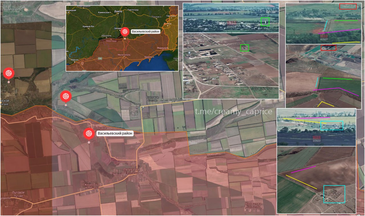 Источник: https://t.me/wargonzo/13171 "Битва за Лобковое. Активизация боевых действий в районе населённого пункта Каменское. Перемещение военной техники ВСУ, стрельба армейской авиации ВСУ с кабрирования. 47.549761, 35.371874 47.5409837, 35.4120898 47.522173, 35.422090 "Источники проекта @wargonzo сообщают, что на линии Орехов-Работино интенсивность боевых действий заметно снизилась. Скорее всего это обусловлено плохими погодными условиями – идет дождь, что сильно затрудняет аэроразведку. Противник, по всей видимости, подвозит резервы и перегруппировывается для следующего наступления. Более тревожные сведения приходят с линии Каменское-Пятихатки. Судя по кадрам, снятым вблизи н.п. Жеребянки, враг активно использует н.п. Лобковое не только для перемещения техники, но и пехоты, а это говорит о том, что оно перестало быть серой зоной и перешло под контроль ВСУ. Впрочем, большим успехом это назвать нельзя. Наши войска контролируют все близлежащие высоты, что позволяет наносить огневое поражение идущей через Лобковое технике и личному составу." "Sources of the @wargonzo project report that the intensity of hostilities on the Orekhov-Rabodino line has noticeably decreased. Most likely, this is due to bad weather conditions – it is raining, which greatly complicates aerial reconnaissance. The enemy, apparently, is bringing up reserves and regrouping for the next offensive. More disturbing information comes from the Kamenskoye-Pyatikhatki line. Judging by the footage taken near the locality of Zherebyanka, the enemy is actively using the locality of Pubic not only to move equipment, but also infantry, and this suggests that it has ceased to be a gray zone and has come under the control of the APU. However, this cannot be called a great success. Our troops control all nearby heights, which makes it possible to inflict fire damage to equipment and personnel going through Pubic."