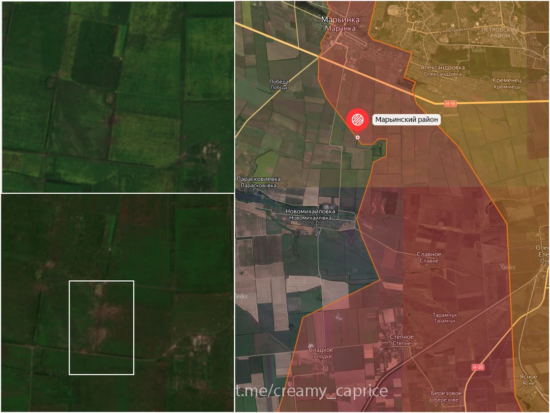 Источник: https://t.me/romanov_92/39425 Ещё материалы по теме: Шахид-МТЛБ уничтожает опорник ВСУ южнее Марьинки на Донецком направлении __________________________________ Марьинка - Новомихайловское - Победа Последствия атаки на позиции ВСУ с использованием бронетехники в качестве шахид-мобилей в районе Марьинки на спутниковых снимках. Сравнение снимков за 2 и 22 июня.